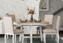 With round tabletop and special curved chair legs, the graceful natural wood texture on the tabletop and upholstered dining chairs, that is suitable for farmhouse or modern style dining room. The dining table with an X-shaped base and keyed-through tenons, and small wooden blocks on the tabletop edge make this dining table more stable and durable. Taking into account the use of different scenarios, the table of this dining table set adopts a flexible design and the length can be adjusted.