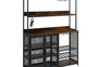 Coffee bar cabinet with power outlet, industrial buffet cabinet with LED strip light and glass stand