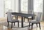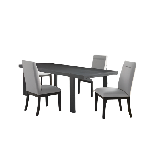 Set includes the 77-95 inch-inch Yves Dining Table, 4 Yves Performance Gray Side Chairs