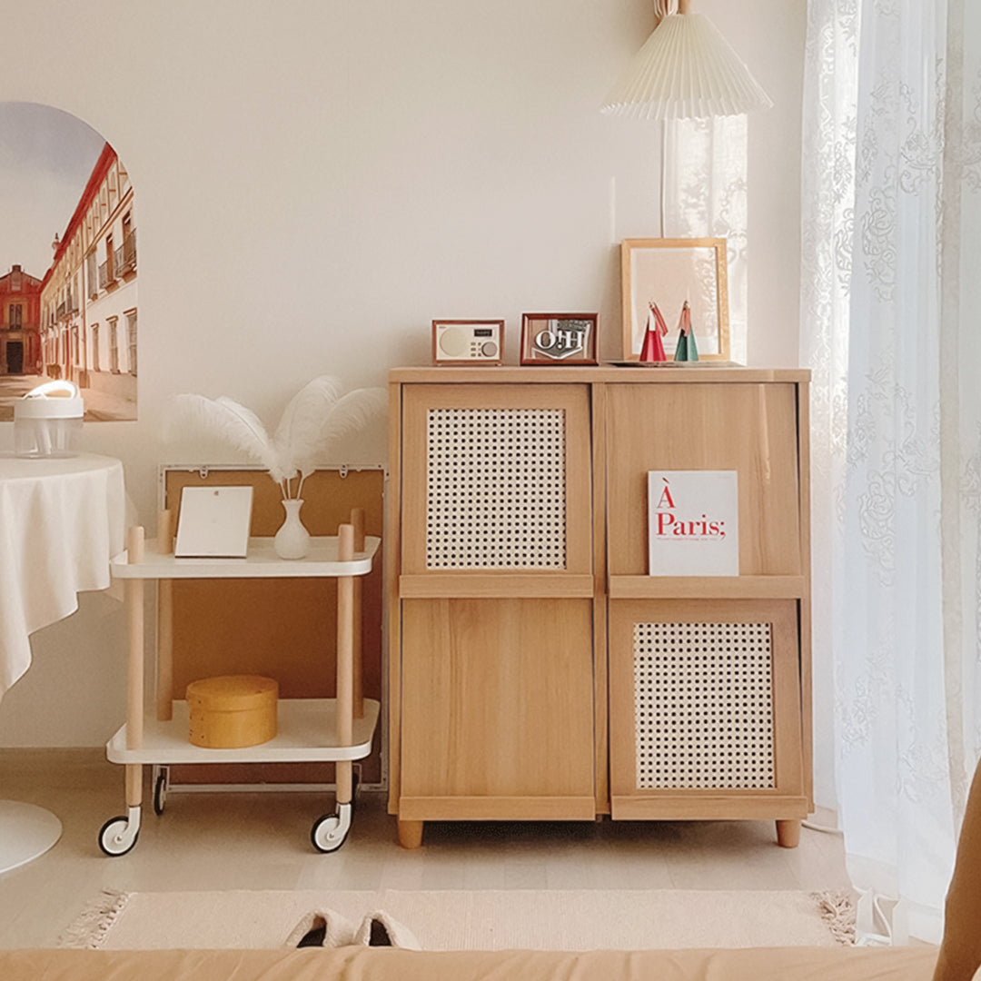 Iskandar Sideboard With Magazine Rack, Solid Wood & Rattan, Storage