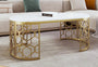 Glamorous Design: The gold-colored stainless steel legs of the table feature an openwork pattern. This design adds a touch of opulence and sophistication to any living space, making it a perfect centerpiece for chic and upscale interiors.