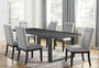 Set includes the 77-95 inch-inch Yves Dining Table, 6 Yves Performance Gray Side Chairs